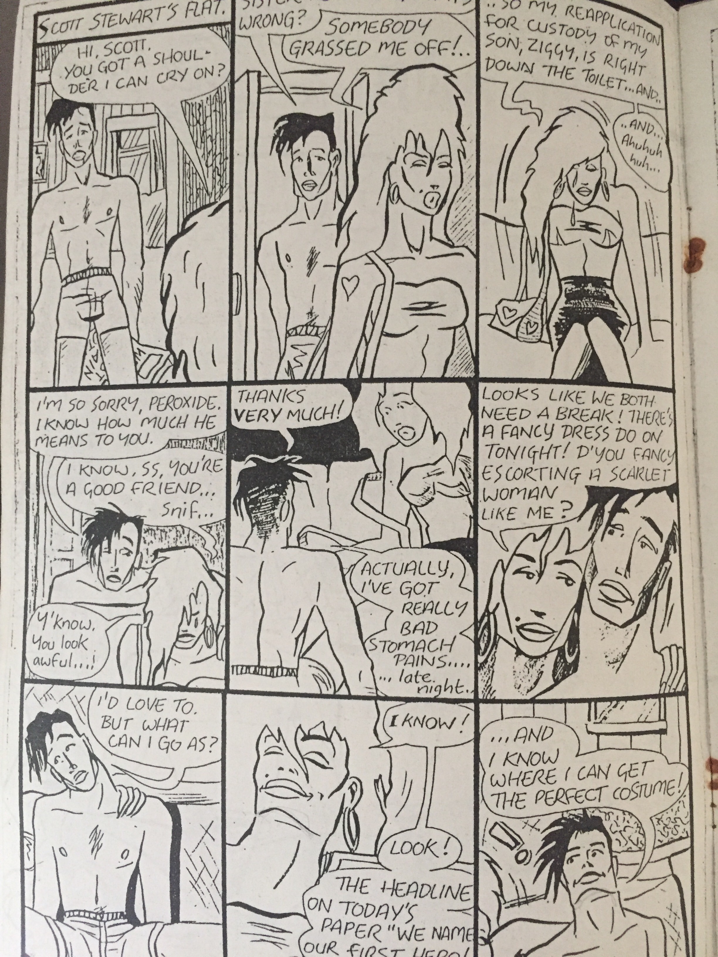 Sister Peroxide was introduced in issue 6. A single mum and ‘scarlet woman’ this was a Craig Conlan inspired character, showing another side of Edinburgh that wasn’t all castles and Royal Miles. She was knocked out by Mikey Lee before he also met his hilarious ‘Indiana Jones’ inspired demise – never to be seen again.