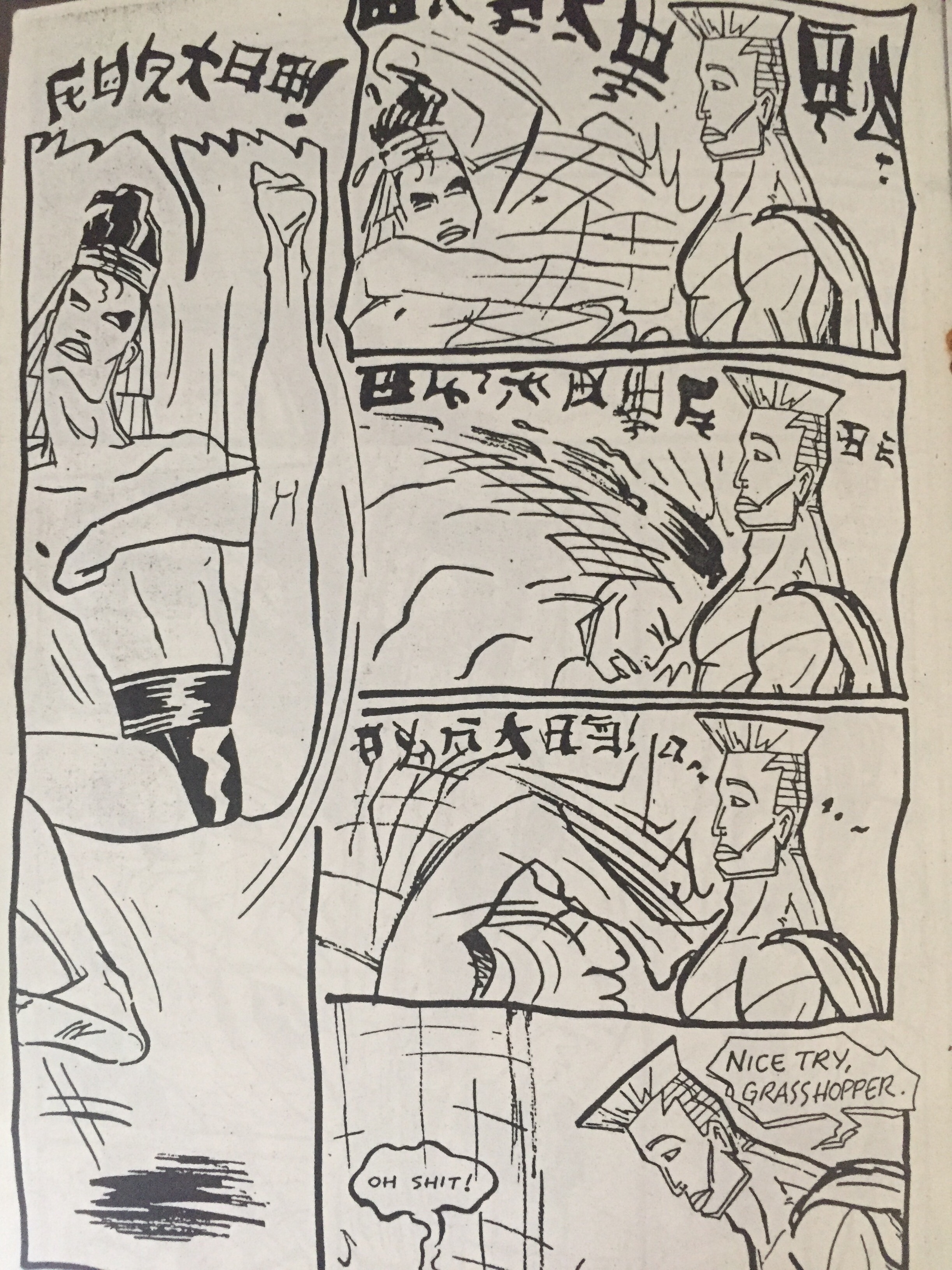 Craig struggled to meet deadline for issue 3 (writing and drawing ‘Dogma’ instead) made issue 4 but really wanted some entertaining characters to draw. Tony promised to wash away the everyday life storyline and introduce a Ronin inspired Mikey Lee ninja character with a rather humour filled origin story.