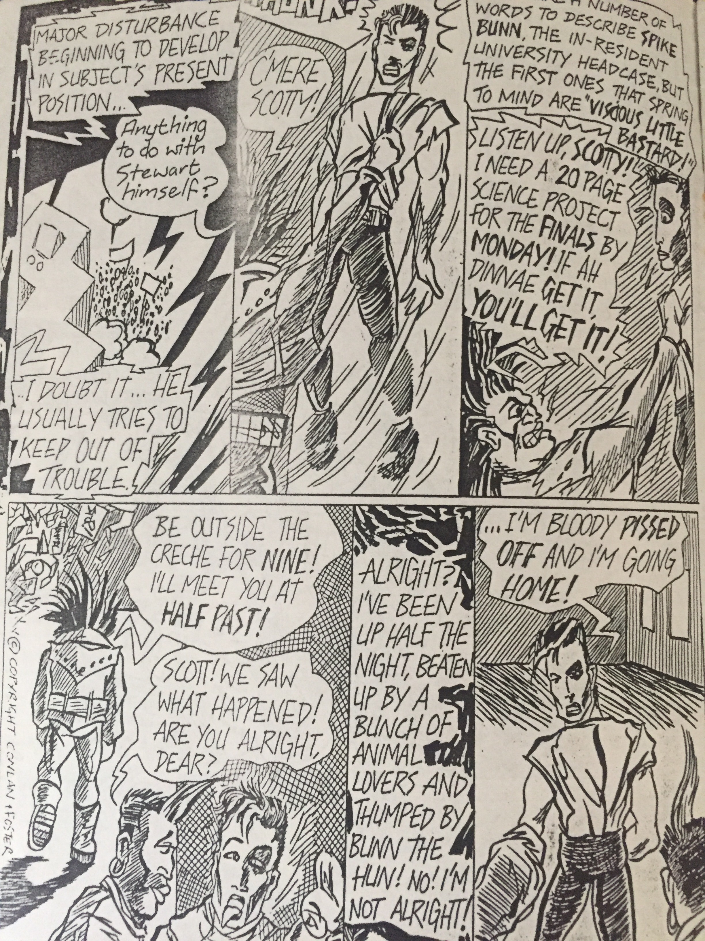 Scott had to face everyday issue on campus too. Spike Bunn the resident university hardcase and bully and a godfather style landlord who he was in debt to for rent – not exactly entertaining storylines for Craig who liked to do his own writing and wonderful expressive art.