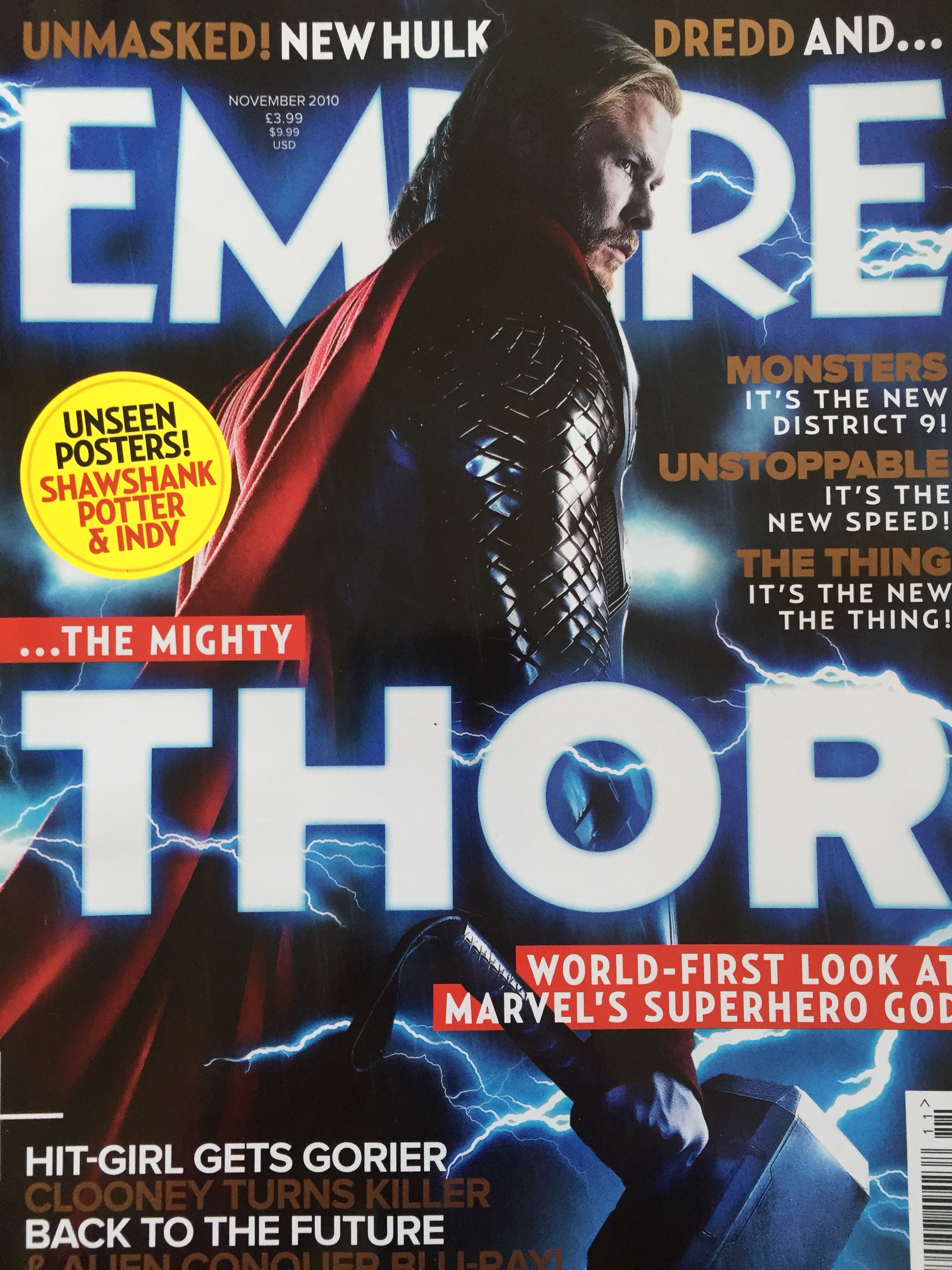 Thor the Dark World is featured in the October 2013 issue of Empire. The issue also includes the new Doctor Who Peter Capaldi, Karen Gillan in Guardian of the Galaxy, Superman v Batman and Get Carter. Kick Ass 2 gets a three star review and Iron Man 3 on DVD gets 4 stars!