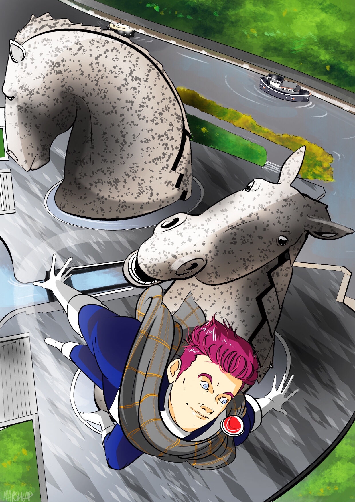 Faster. Forward. Bouncing between sports stadiums and golf courses. I provide a gust of wind so she gets her birdie on the fourth hole. Over the frozen Pentland Hills. Spinning around swirling land masses that point to Jupiter. I follow the arrow up as far as I can go then down, catapulting off the Five Sisters bings. I just miss the tip of Linlithgow Palace and head to Falkirk. Wow, almost hit two steel horses heads. They look amazing. Once around the Wallace Monument. Twice around Stirling Castle. Everything’s changed. I’ve changed.