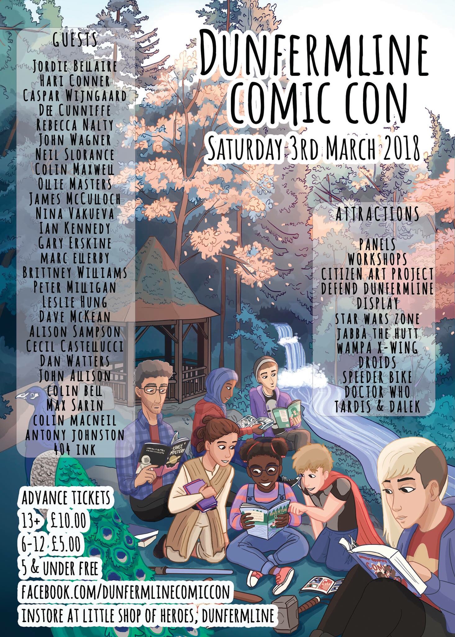 Dunfermline Comic Con 2018 poster is by SICBA award winning creator Hari Conner (hari-illustration.com)