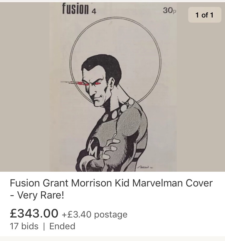 It was part of a number of zines to raise money for new comic art projects. A second cover drawn by Morrison went for £162 with an issue of ‘Fusion’, featuring interviews with Alan Moore and Alan Davis, selling for £83. A publication based around interviews with 2000AD sold for just under £40.