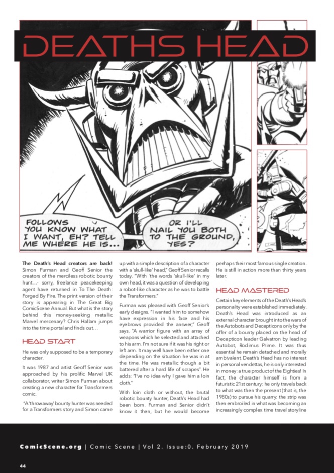 As the ComicScene Annual features work from the Vigilant Simon Furman and Geoff Senior on To The Death, we take a look attheir popular character Death’s Head.