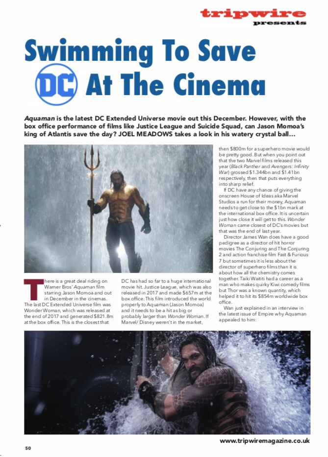 The team at Tripwire bring you eight pages of comic inspired TV and Film projects, including the hugely successful Aquaman Movie.