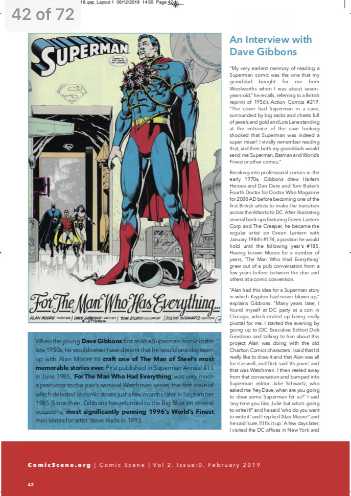 Dave Gibbons revisits For the Man Who Has Everything. During 2019 ComicScene will be taking a look at a number of Alan Moore projects as he announces his retirement from comic writing.