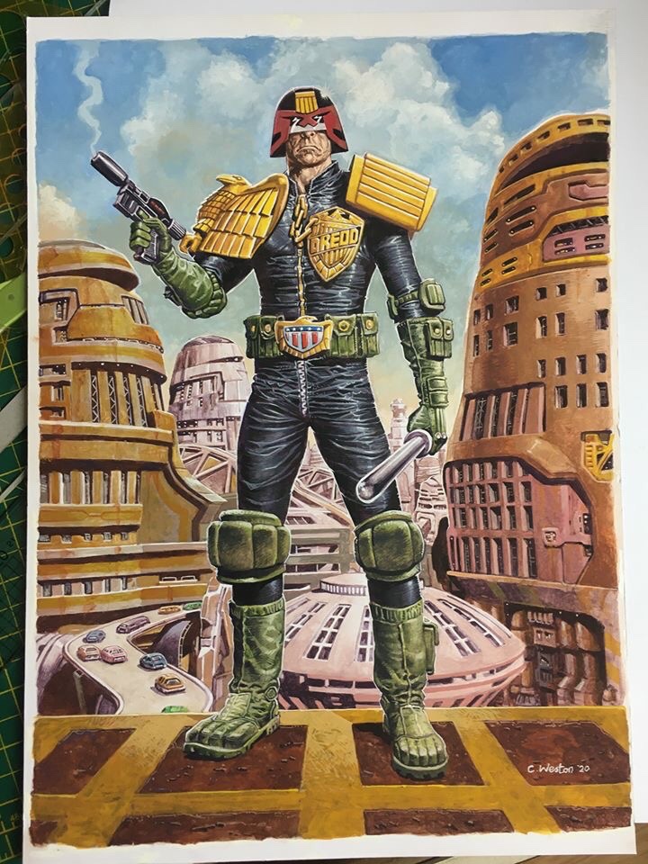 Chris Weston has shared a piece of Judge Dredd art which is on eBay now – Bid’s are currently at £400.