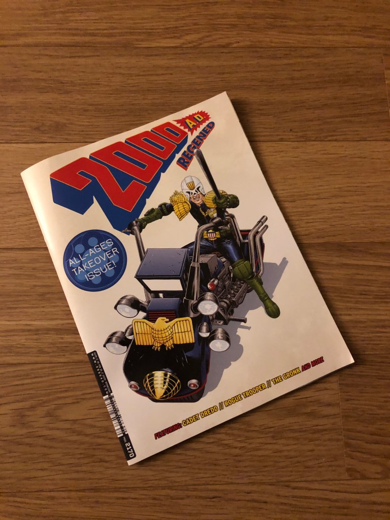 So here we are with 2000AD Regened – another stab at pulling in younger readers and the first of four this year. Cleverly incorporated into the comics ongoing numbering system die hard fans will be there. And yes they may even share their copy – or buy another to give to someone far younger than themselves. Rebellion will no doubt hope people just buy a copy, if not to indoctrinate them into the cult of 2000AD but buy the other kid friendly titles they are launching during 2020. It looks an exciting roster for young and old.