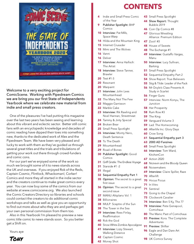 The ComicScene State of Independents Yearbook 2020 is a 100 page perfect bound collectors item listing every single indie and small press comic you must own right now and why!