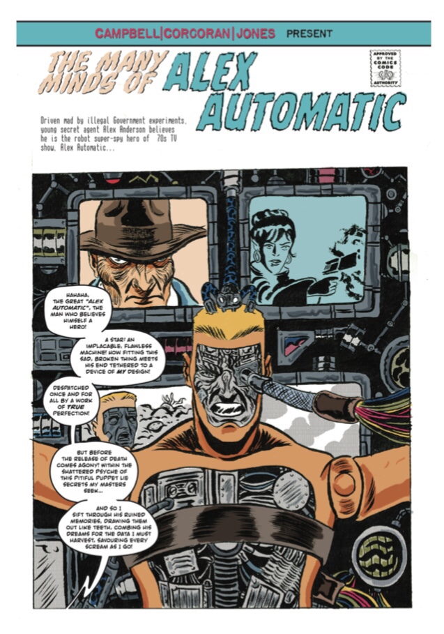 The concept of the award winning Alex Automatic is just so 70’s TV show it was a no brainer to feature him in the Annual. This front piece came in and reminded me so much of those Marvel Annual splash pages it just had to feature as the first strip in the Annual.