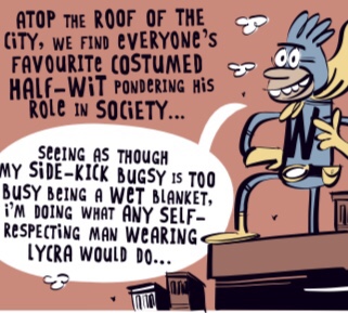 It really does feel odd putting superheroes in a U.K. anthology. Even stranger that we have a passion for superheroes and many of our great writers have written some classic US superhero stories yet don’t have many of our own. Mahoneys has the humour and interaction of a U.K. strip which makes it so good. Fantastic art too. Richard is quite brilliant and helpful too.