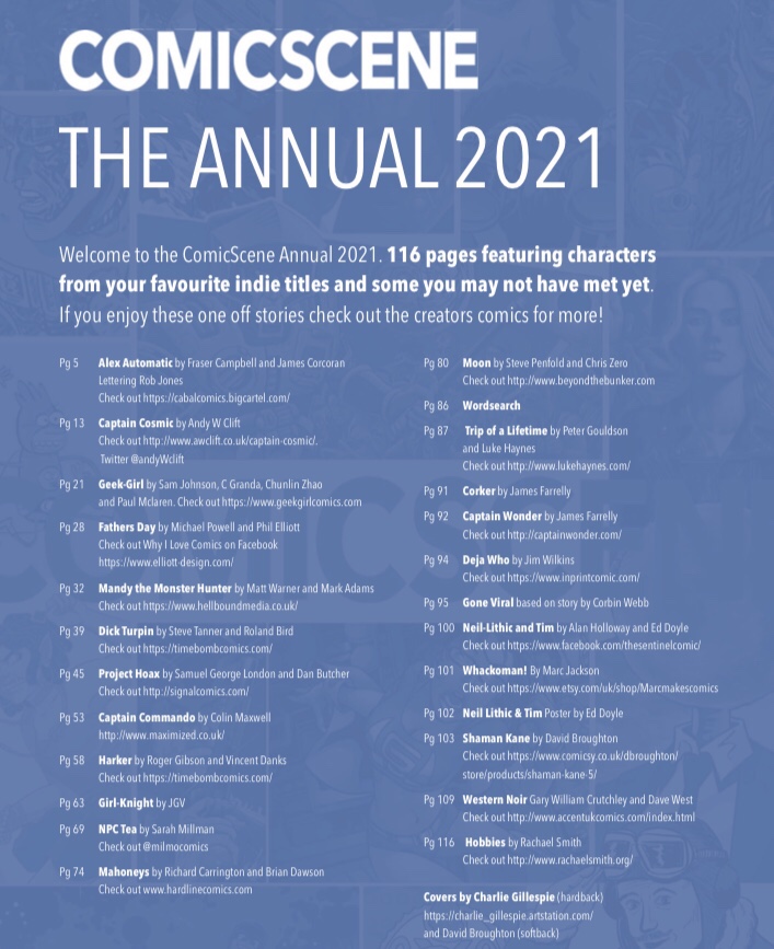 What goes into making an indie comic book? Publisher Tony Foster takes an in-depth look at producing the 116 page ComicScene Hardback Annual 2021 and some of the thoughts that went into its production. It’s available in print (hardcover) and digital now and to pre order for March 2021 in softcover. Order at GetMyComics