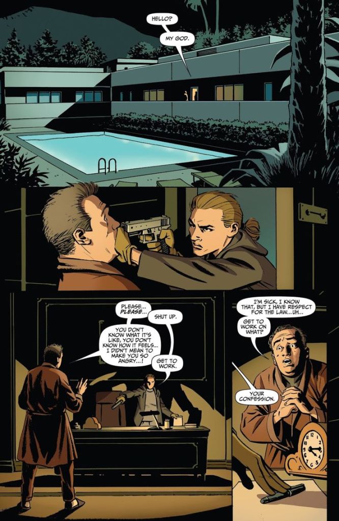 “A Walk Through Hell” isn’t a nice little horror book that bangs out thrills and scares over five issues, though. This is a twelve issue series, published by Aftershock, that is, basically, dark as Satan’s arsehole. Ennis is aided by artist Goran Sudzuka, and I have to say he really does a fine job, with clear images and well designed characters. He genuinely reminds me of Ennis’ old mate Steve Dillon (still sadly missed), only not as good. This isn’t a criticism, as Dillon was a master of subtle expressions and the art of portraying everyday monsters, and Sudzuka has that creative whiff about him in his character and facial designs.