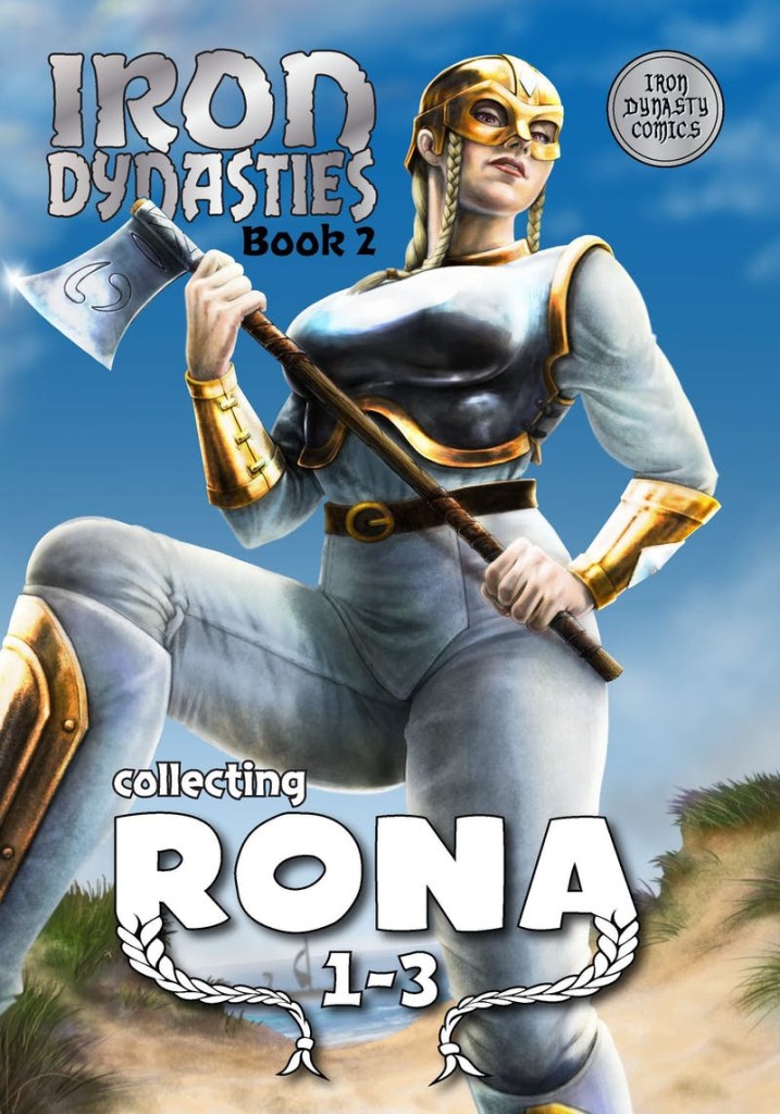 Iron Dynasties Book 2 collects the first three Rona issues, and should be available for May. Pre-order in the www.irondynastycomics.com ‘store’. Rona grew up in a land ruled by seven Pleiadian queens. One of these monarchs died and left behind only a son as heir. Men cannot rule so Harald Asteropeson (now know as Dragonblood) decided to go against his people and take over Pleiadian lands with his army of Power Males. Special guest cover artist is Janine Van Moosel.