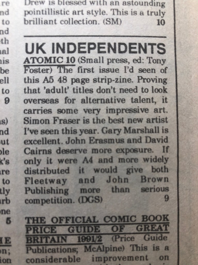 The publisher has reopened submissions and is looking for stand alone Indie Stories, Adventure, Sci Fi, Time Travel, War, Crime, Horror, Magic, Fantasy, Heroes, Manga, Love and Romance. Complete can be 2 to 12 pages in length for the proposed A4 format comics. The publisher is also looking for newspaper style / half page and full page humour stories for an additional secret project still in development. All stories in Atomic and the Saturday Comic Box will remain creator owned and launched on Kickstarter. Email comicsceneuk@gmail.com by end of June 2021. Tony said, “We have been working with flops comics to make a visually exciting line of comics and just as we did with Atomic 35 years ago I hope to find some exceptional talent with fantastic stories to tell. These could be stories you have to hand, new stories, experimental stories or featuring established comic characters, as we did in the ComicScene Annual 2021.”