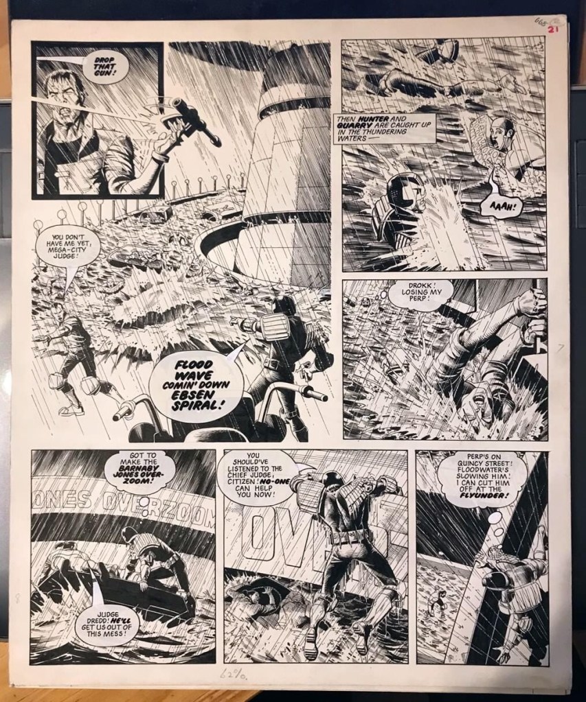 “Work on the upcoming Brian Bolland Apex edition from Rebellion is almost done, with only a few weeks to go before the book is sent to the printers… but there’s still time to contribute! Do you have an amazing page of Judge Dredd artwork by Brian? If you’d like to see it included in the book please do let me know! And if you have a shy friend who hasn’t posted their collection on-line please send them my way, there are still many pages I’ve not managed to track down yet. The book is looking absolutely incredible I must say- think of it as an art gallery in print devoted to one of the greatest British comic artists….. I can’t wait to actually see it all in the flesh.”
