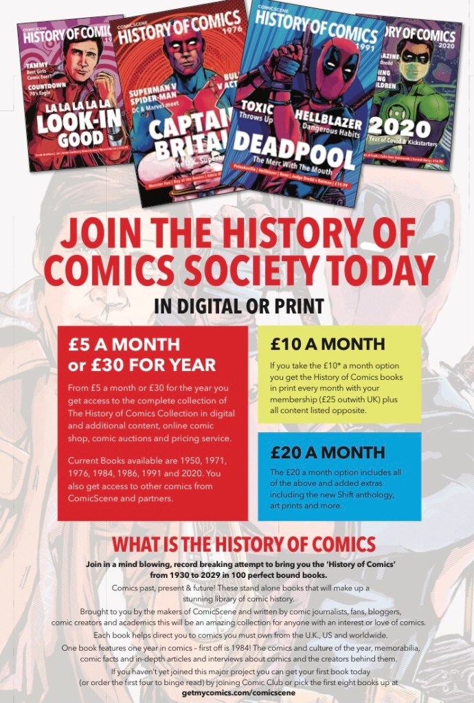 Don’t forget you can get your regular Shift (including the ComicScene section) and the History of Comics as part of the £20 membership of the History of Comics Society. Details here.