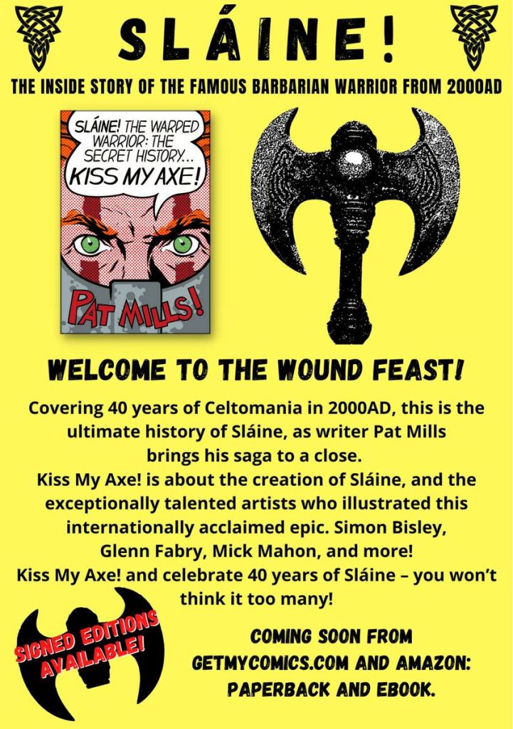 WELCOME TO THE WOUND FEAST! Kindle edition of Kiss My Axe – The Secret History of Slaine is out now! Paperback to follow soon.