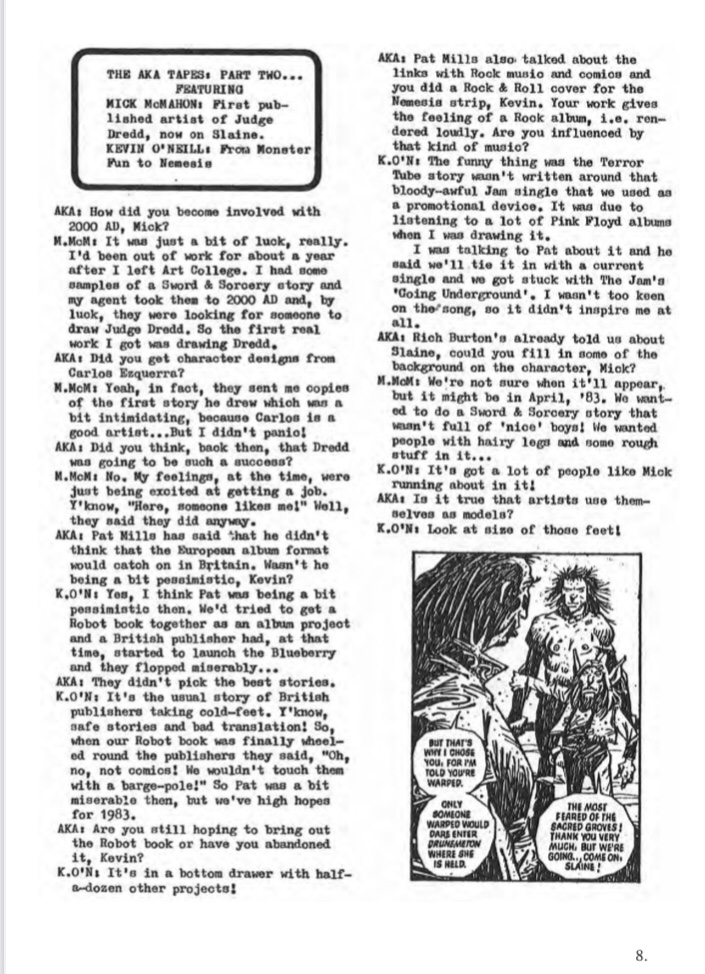 Also in our digital library is an interview with Mick McMahon and Kev O’Neill in which he talks about Dredd and the early development of Slaine. You can find it the very rare AKA 2000AD Tapes from 1983.