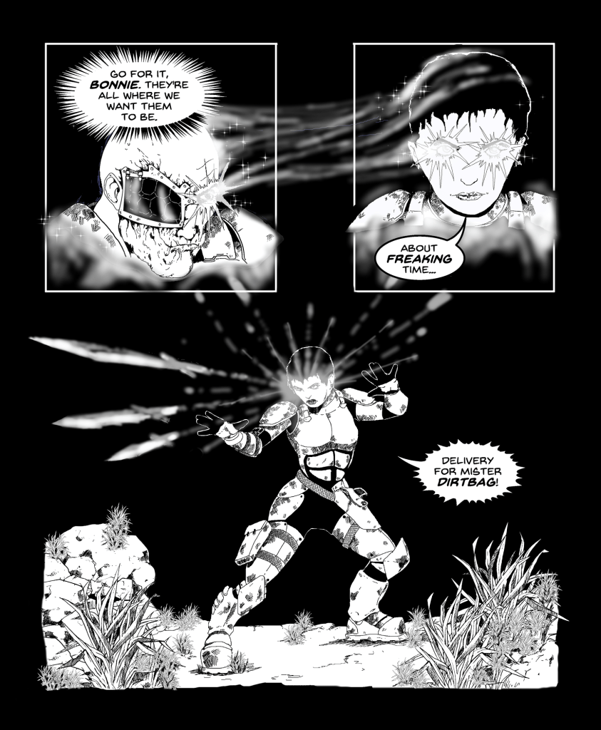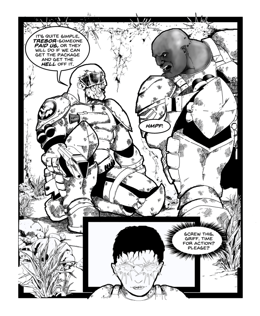 After Misty and a short break of just doodling a few Dredds (laughs) my go to character for winding down , I contacted Alan and asked for a futuristic war script with no teenage girls in it. I wanted to see if I could illustrate something a bit more along the lines of a 2000ad type story. Growing up in the 70s and 80s that was the comic to get and used to dream of illustrating for them. That’s all I did back then was get comics and draw.