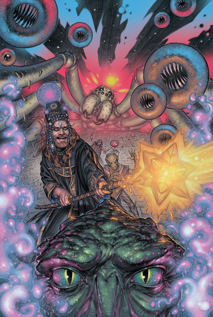 Boo Cook: I’m currently working on a fungal body horror / existential mayhem strip DEATH CAP for the Judge Dredd Megazine with writer Tom Eglington which is currently running in the comic. The story is about disgraced ex Texas City Judge Anita Goya whose bad decision sees her end up raising a small family in a wild west rad-back town. While she is away, mutant marauders who are infected with a further mutated variant of the old Grubbs disease from “Apocalypse War” story “Fungus”by Wagner/Grant and Ezquerra, are led to her town by Wayde in search of something specific and in the process, burn down Goya’s town and murder her family while she is away. This causes Goya to go off on an angst fueled warpath to track down the mutants and exact her revenge.
