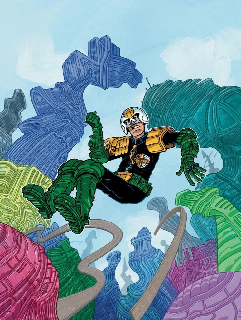 “Cadet Dredd is caught in a dream world on Steve Robert’s new cover to 2000 AD Regened Prog 2325 – out on 29 March from all good newsagents, comic shops, and on the app!