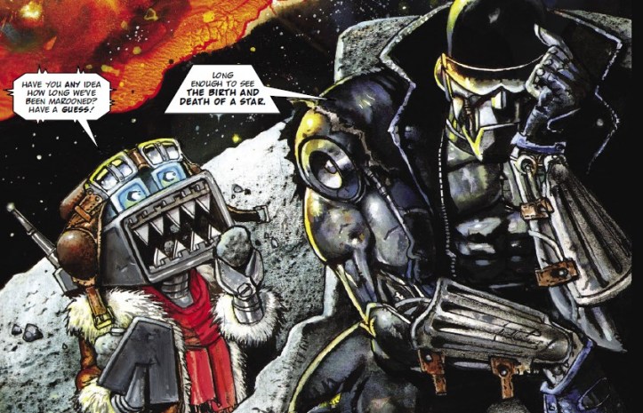 Alan: I wanted to do a Strontium Dog type thing, where it’s basically a western with the sci-fi trappings more of an aside. It’s a gritty tale of a female bounty hunter, Trinity, tracking down the father that sold her into slavery. The title is a riff on one of my favourite westerns, “They Call Him Trinity”, and if we ever do another it will be called “Trinity Is Still Her Name”, after the film’s follow up.