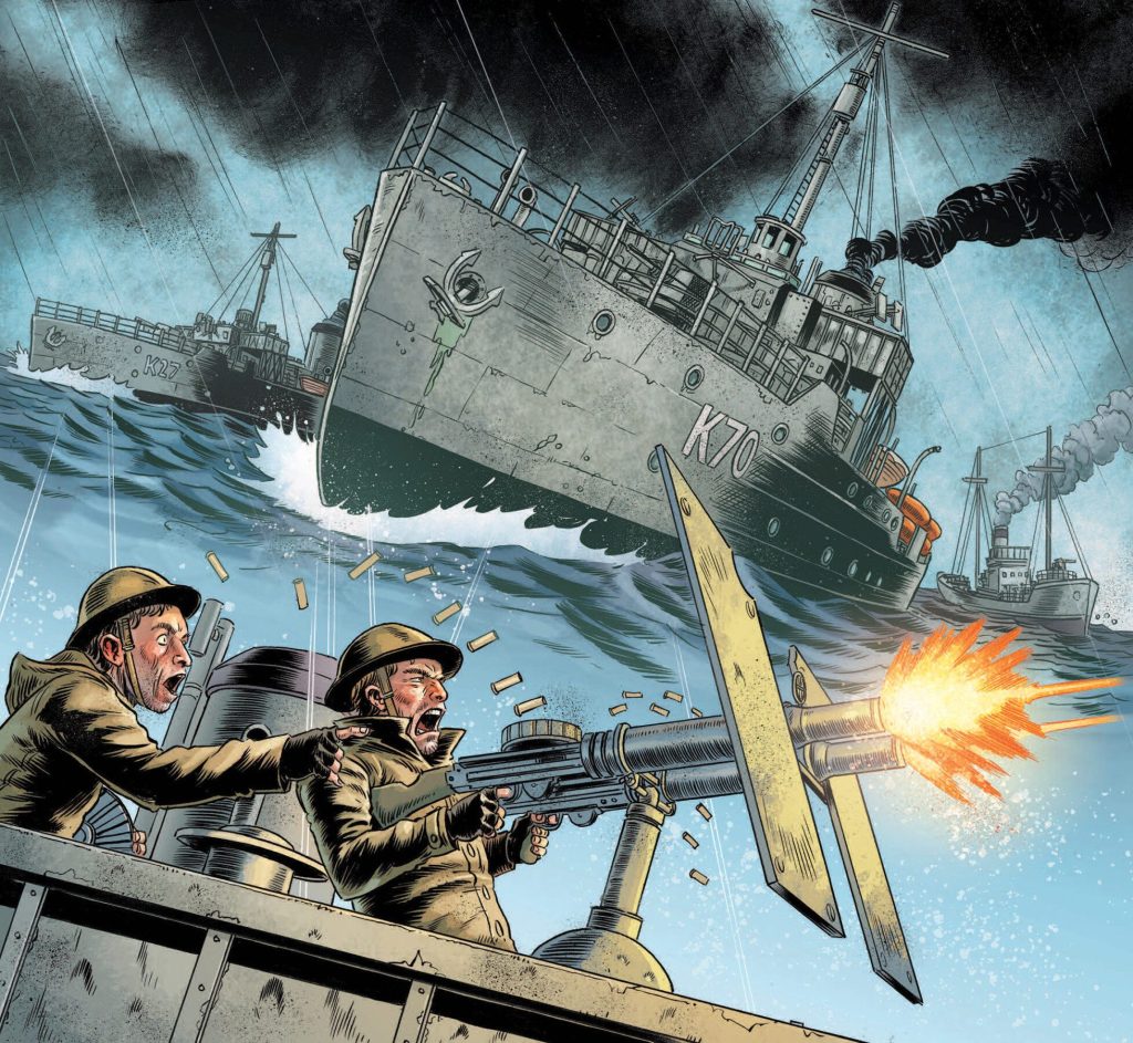 The second strip is the less well known “HMS Nightshade” a strip about a Royal Navy corvette during the Second World War and collected by Titan a few years ago. A favourite with Ennis’, the original strip is exceptional work. Unsung hero of British comics Mike Western’s art is beautifully stark and atmospheric . Co creator John Wagner has been heard to say that he thinks that he finished “HMS Nightshade” too soon, so he, and regular artistic partner and rising star, Dan Cornwell return for this one off.
