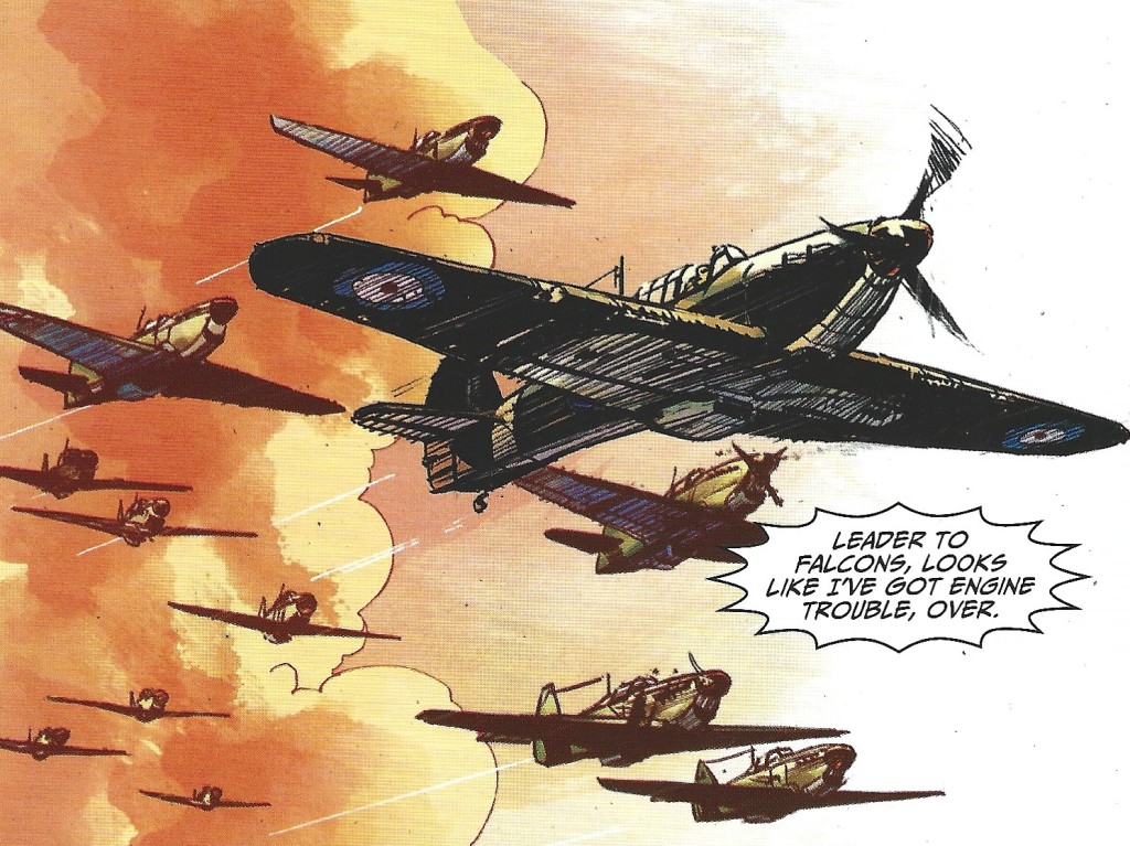 Ennis & Keith Burns, reunite from the special to kick things off in issue 1 with “Johnny Red” the same team that was on the Titan “Johnny Red” series that is “coincidentally “ is currently being reprinted in the Judge Dredd Megazine. A birdstrike on landing leads to Falcon Squadron adopting their namesake to see off any other avian hazards, while Falcon Squadron itself deal with a more human predator. Ennis’ is a king of dialogue, its “saltier” here than in Tom Tully’s run but he has a feel for the characters and is master of “blokey camaraderie”.