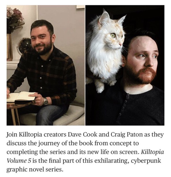 On August 20th, Dave Cook and Craig Cook are doing a talk during the Fringe at the Edinburgh Book Festival about Killtopia – to celebrate the last book dropping this summer, and to talk about the TV show.