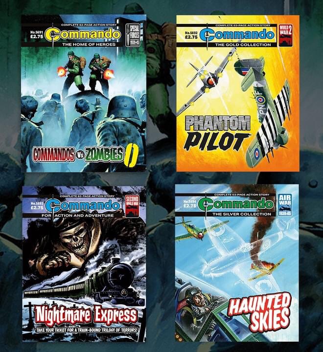 2000AD has a horrific cover and Commando this fortnight has a new addition to Commandoes and Zombies and a collection to. All available via Newsagent.