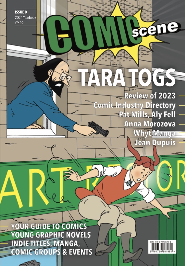 ComicScene are based in Scotland and the magazine returns in print next week – order it here. It’s 100 pages including the 14 page Comic Industry Directory with contacts for schools, libraries and community groups of writers and artists for commissions, workshops and talks. There’s also advice on Crowdfunders, Young Graphic Novels and Manga for the classroom, features and Stephen White has done a 9 page short story featuring Tara Togs. You will see her here first – it will be a collectors item! His 64 page Tara Togs graphic novel was funded by Creative Scotland and we hope to publish it next year!
