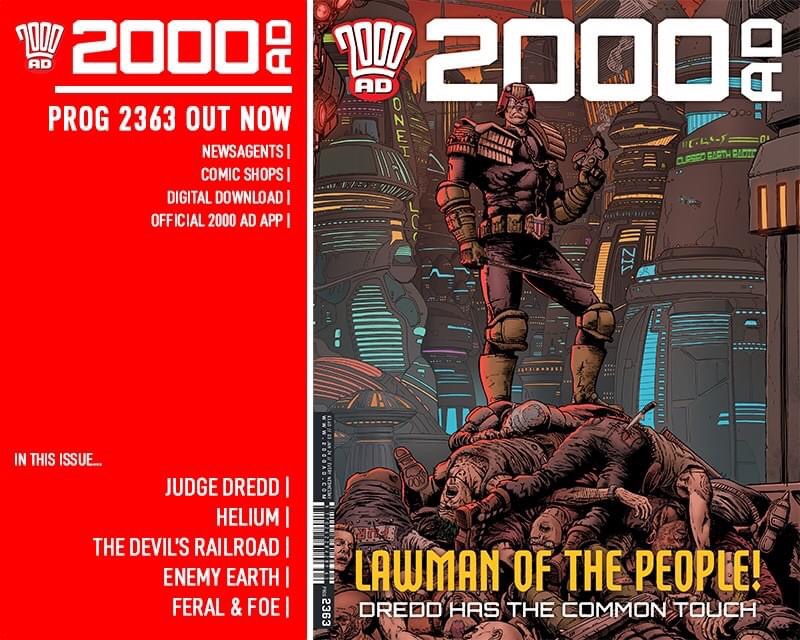This issues fantastic cover is by Steve Austin and you can read about the process of developing the illustration on the 2000AD website.
