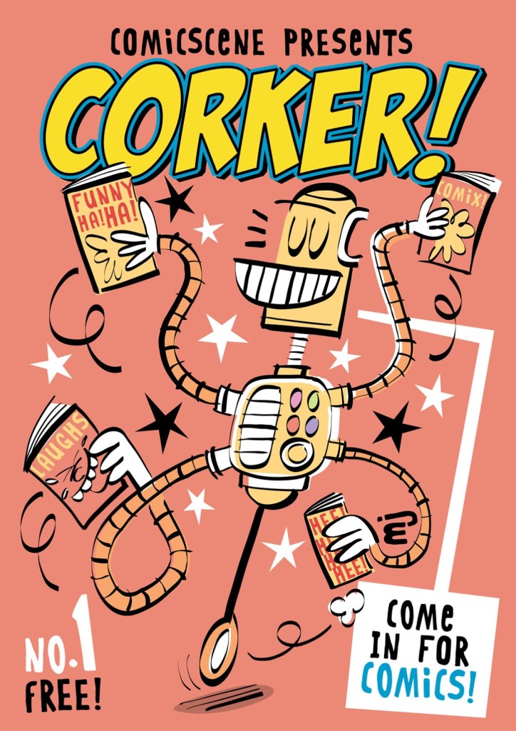 For World Book Day we thought we’d offer for FREE our series of CORKER comics. Corker was given away inside ComicScene, a section that could be pulled out by older readers and given to their children, grandchildren, nieces and nephews to encourage comic reading. We also had a Corker section in the ComicScene Annual and as the book is all ‘child friendly’ we are sharing it here too. If you’d like to include a kid friendly comic here as a free pdf we will share it.