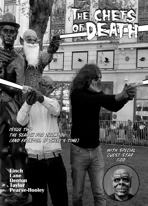 Judge Dredd and Batman artist Boo Cook was kind enough to say the following about The Chefs Of Death – “Bonkers new charity kickstarter comic from the brain of Alex Finch and co in the vein of the old 80’s photo-strips such as Doomlord… Chefs of Death is a crazy satirical read featuring some curious cameos from various folk in the comics industry, myself included. Watch us show them pesky aliens! All proceeds from this issue will go to the charity MIND so hop on and get involved.”