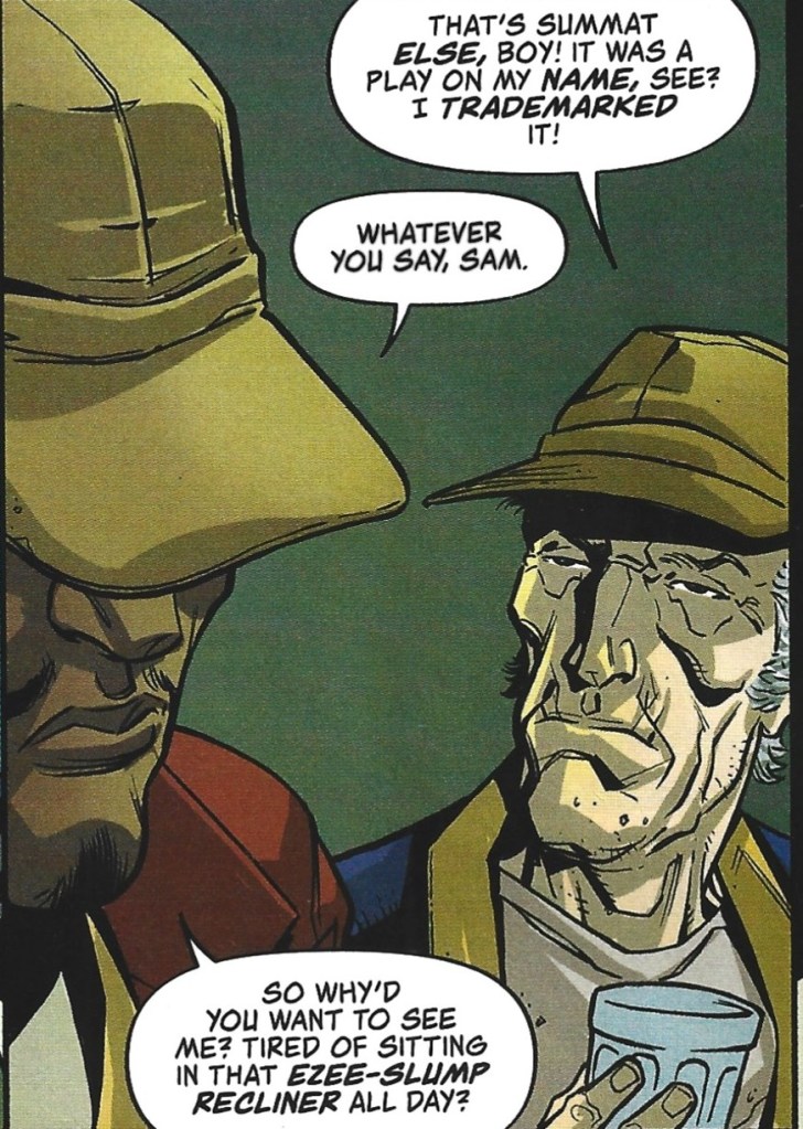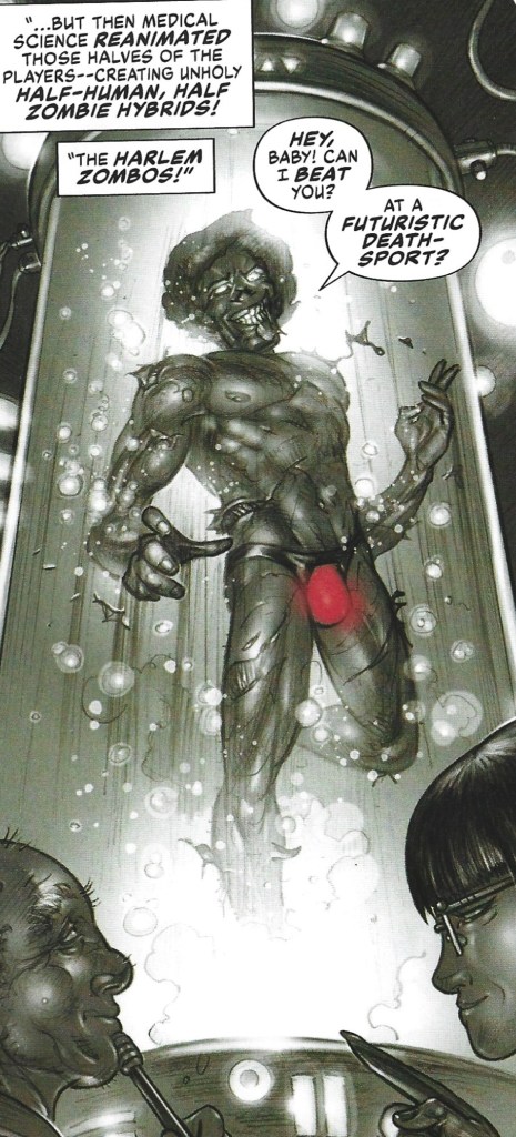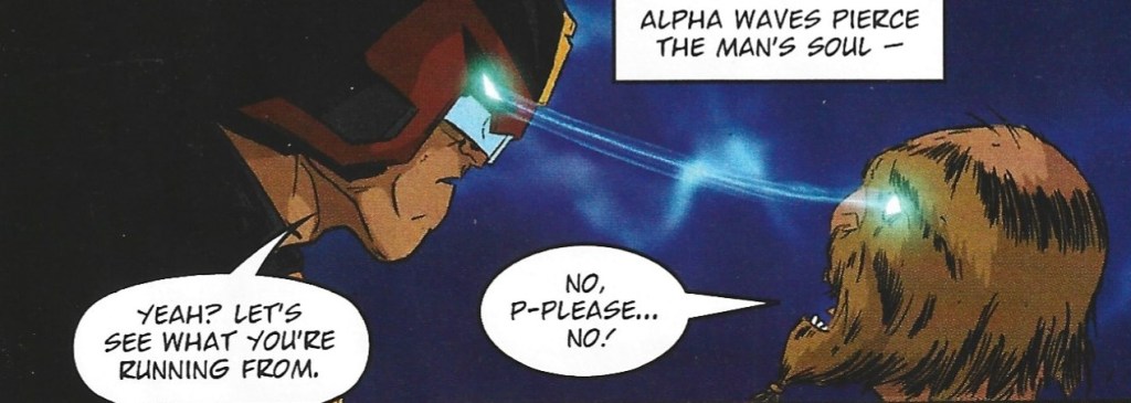 So, what we get is Judge Johnny Alpha of MC1, Zombo’d Harlem Heroes, SD Agent Friday hunting the traitor that betrayed him; Stickleback prowling the Red Seas and the one no one has waiting for wise cracking Robo Hunter meets and puntastic Sinister Dexter.