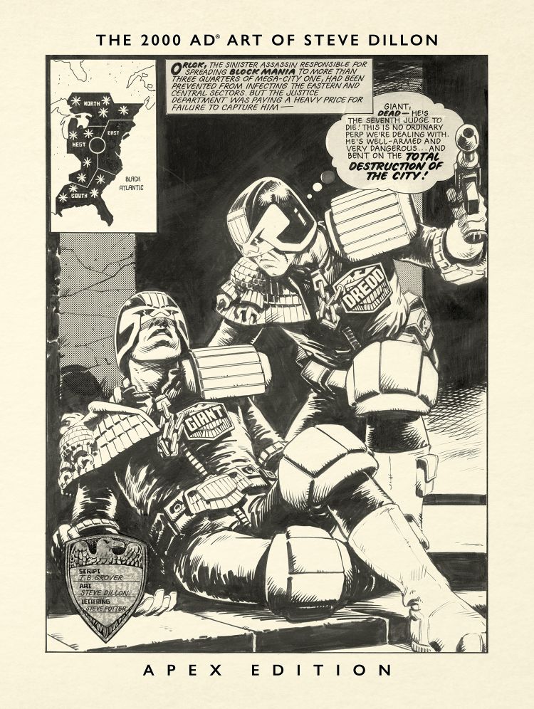 This, the latest edition in the series of Rebellion’s Apex editions, celebrates Dillon’s 2000AD work. Dillon also drew hundreds of pages for 2000AD most notably on Judge Dredd, Rogue Trooper, his creation Hap Hazzard, Future Shocks, Tyranny Rex the new Harlem Heroes and others. Sadly, not every strip is represented here, but with Dillon’s output, that would be a VERY big book.