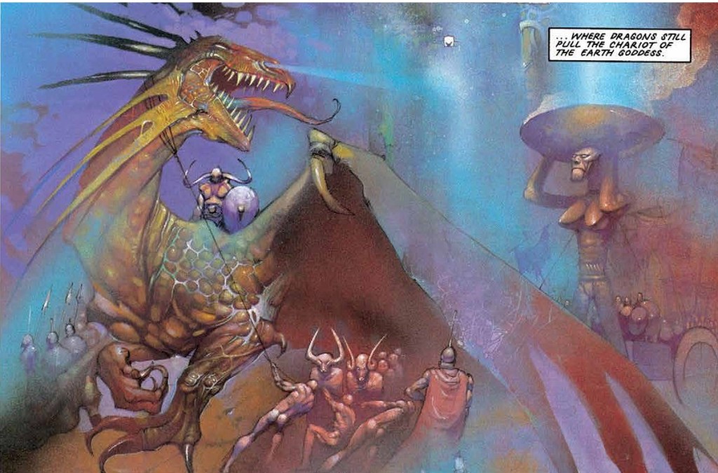 Watching this unfold in the Prog, it was truly seismic. Most of the attention is on Bisley’s art, but “The Horned God” is the point where Mills’s scripting was maturing rapidly and was bringing in more and more radical ideas and is amongst his best work, alongside Marshal Law. The perfect balance of humour and violence. Character development is paramount, Slaine comes across as driven but thoughtful, open to introspection, reflective, but also gullible – human, and affected by great tragedy. The supporting characters and sharp script driving the story forward. Building to a crescendo over the course of 3 books. It would have been a fitting capstone to the series.