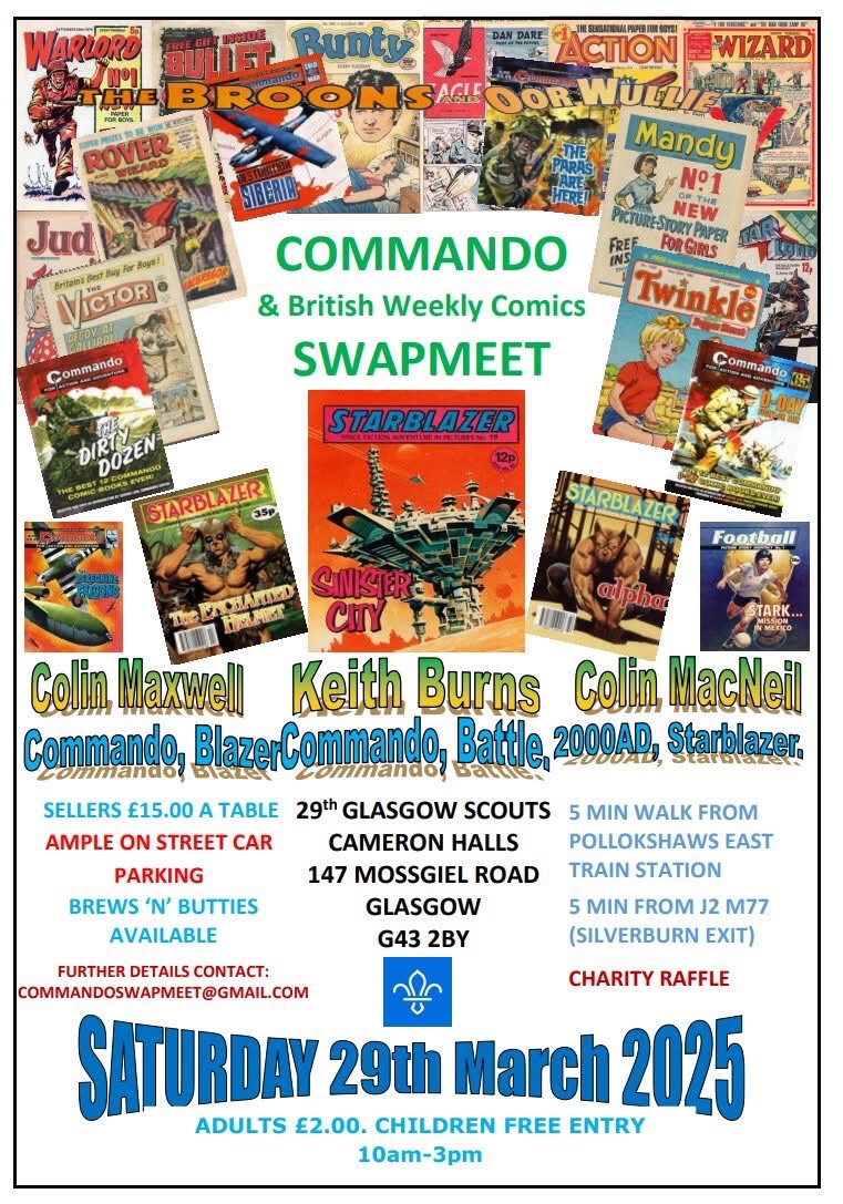 The next Commando and British Weekly Comics Swap meet will be held on the 29th March next year.