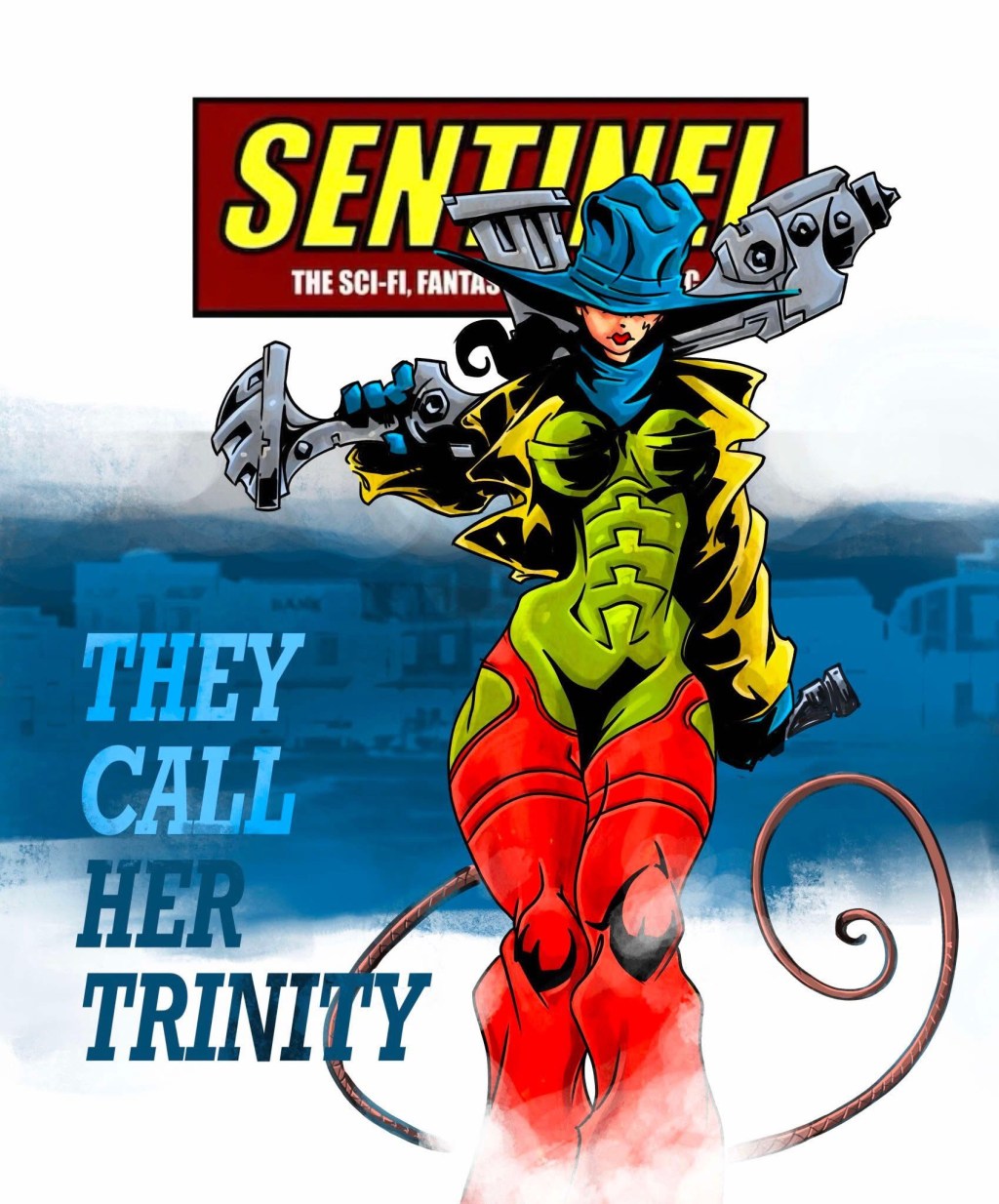 Sentinel is back in June. “Fantastic cover by Mal Earl for the forthcoming Issue 17 of Sentinel: They Call Her Trinity. We’ve seen the 64 interior pages that Mal has drawn and they are stunning. Heading to kickstarter the middle of June.”