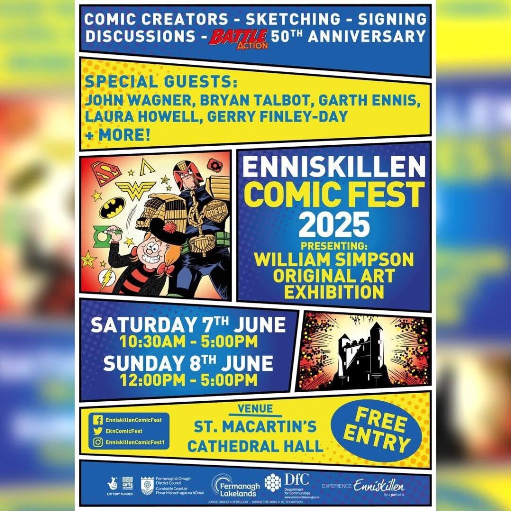 ComicFest are proud to announce that they will be hosting an Exhibition of original artwork by William Simpson this year. Will still has a wealth of his original art right from his break into the industry with Big Ben in Warrior through Judge Dredd, Rogue Trooper, Venus Bluejeans, Hellblazer and Batman. The Exhibition will run over both days, 7th and 8th June. Don’t miss it!