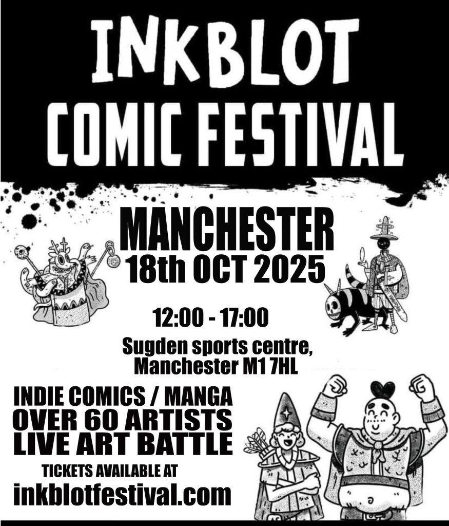 Inkblot Comic Festival returns to Manchester on the 18th of October. They have artists, Comics, Manga, Collectables – and for the the first time ever the launch of the Inkblot publishing label and a full force live artist battle! Tickets are on sale now as well as VIP tickets with early access and some goodies!