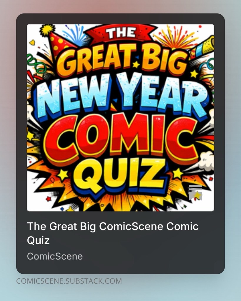The ComicScene Great Big New Year Comic Quiz – have fun 🤩 https://open.substack.com/pub/comicscene/p/the-great-big-comicscene-comic-quiz?r=281kwa&utm_medium=ios&shareImageVariant=card