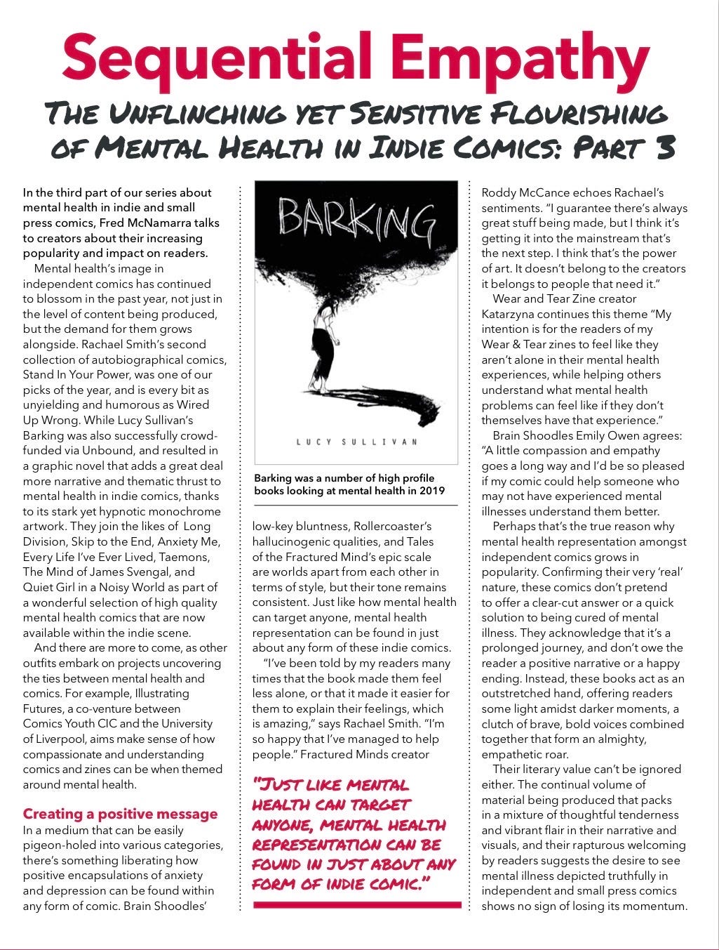The magazine was in store like Barnes and Noble internationally and I was on the verge of agreeing a deal to expand into US comic shops and planning a refresh: a US comic size format suited to comic stores and newsagents, fewer pages to reduce design and production costs, and a lower cover price – under a fiver – by carefully absorbing postage and tightening the budget. The goal was always to maintain the right editorial balance with good, quality design: classic and contemporary comics from the UK, US, Europe, and beyond where indie creators have an equal seat alongside the work of professional publishers.